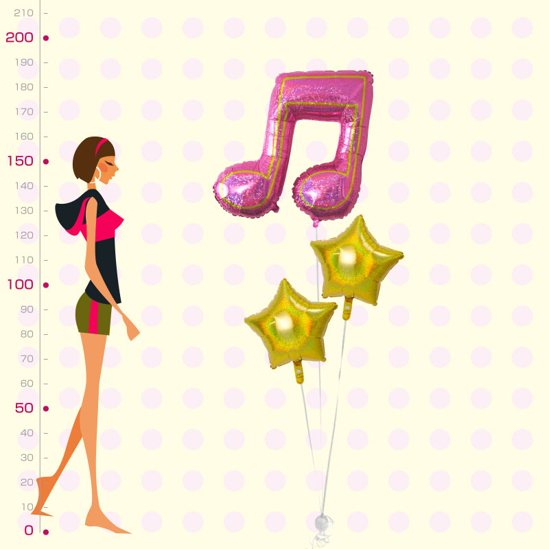 大きな音符と2連スターバルーン【ピアノやバレエの発表会のバルーン電報】
