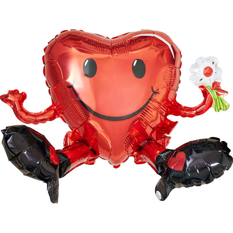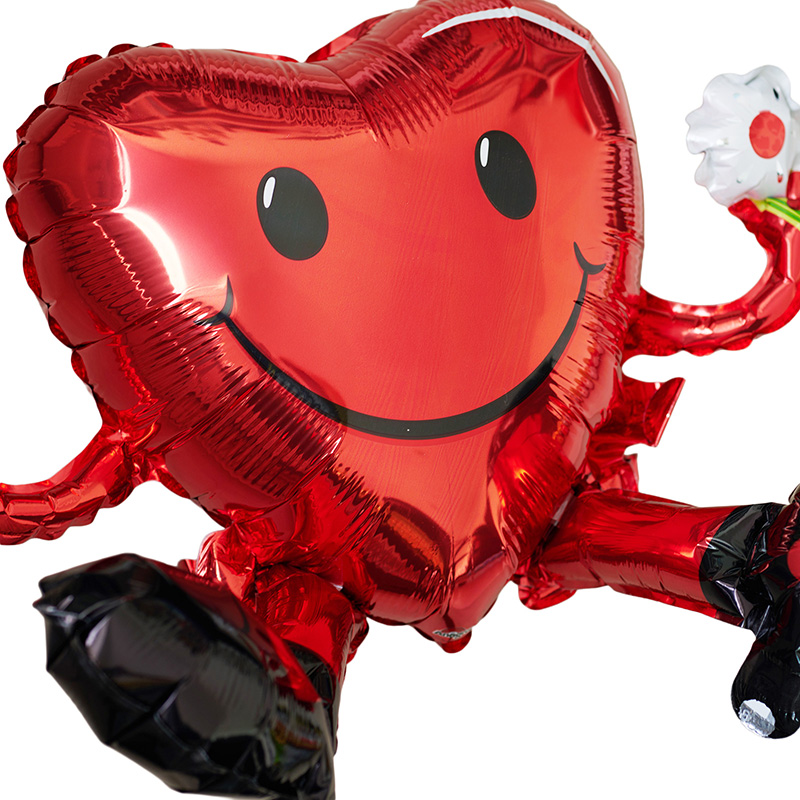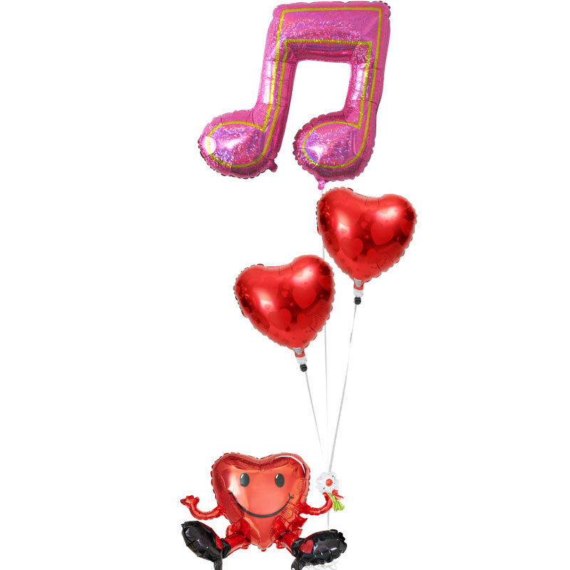 ハート君が持つ大きな音符と2連ハート柄レッドハート【ピアノやバレエの発表会のバルーン電報】