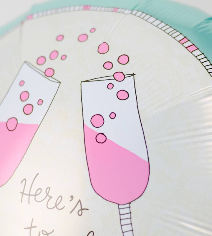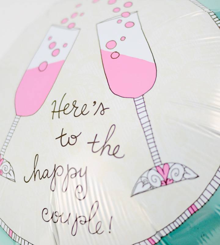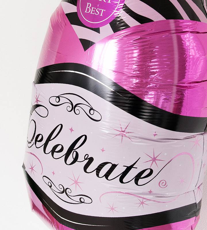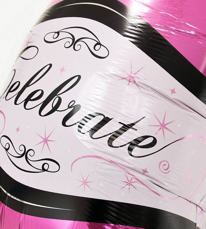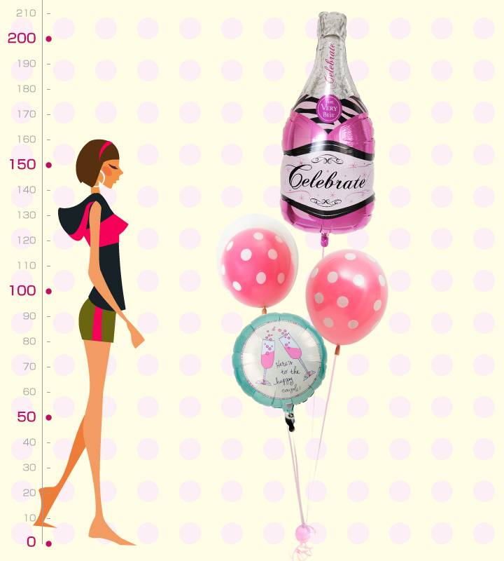 大きなシャンパンとピンクドット、シャンパン&ケーキのウェディング【結婚式のバルーン電報】